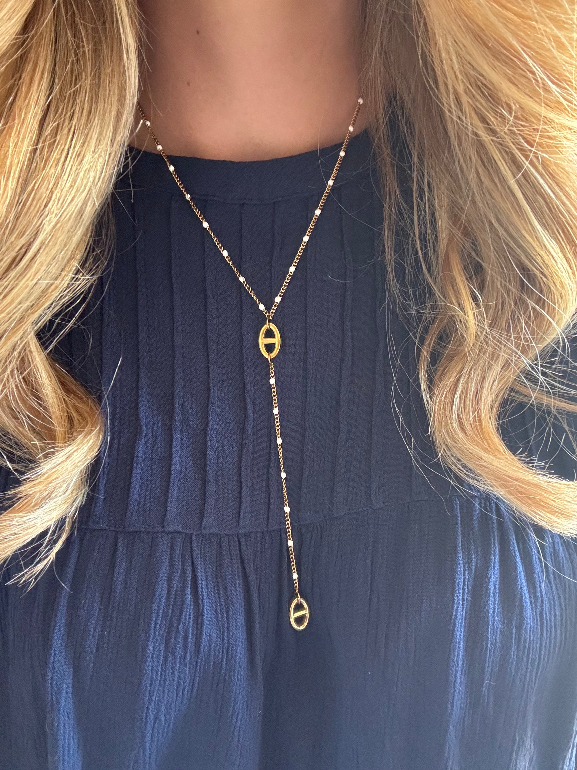 Collier en y en acier inoxydable doré avec des mailles marine 🪩